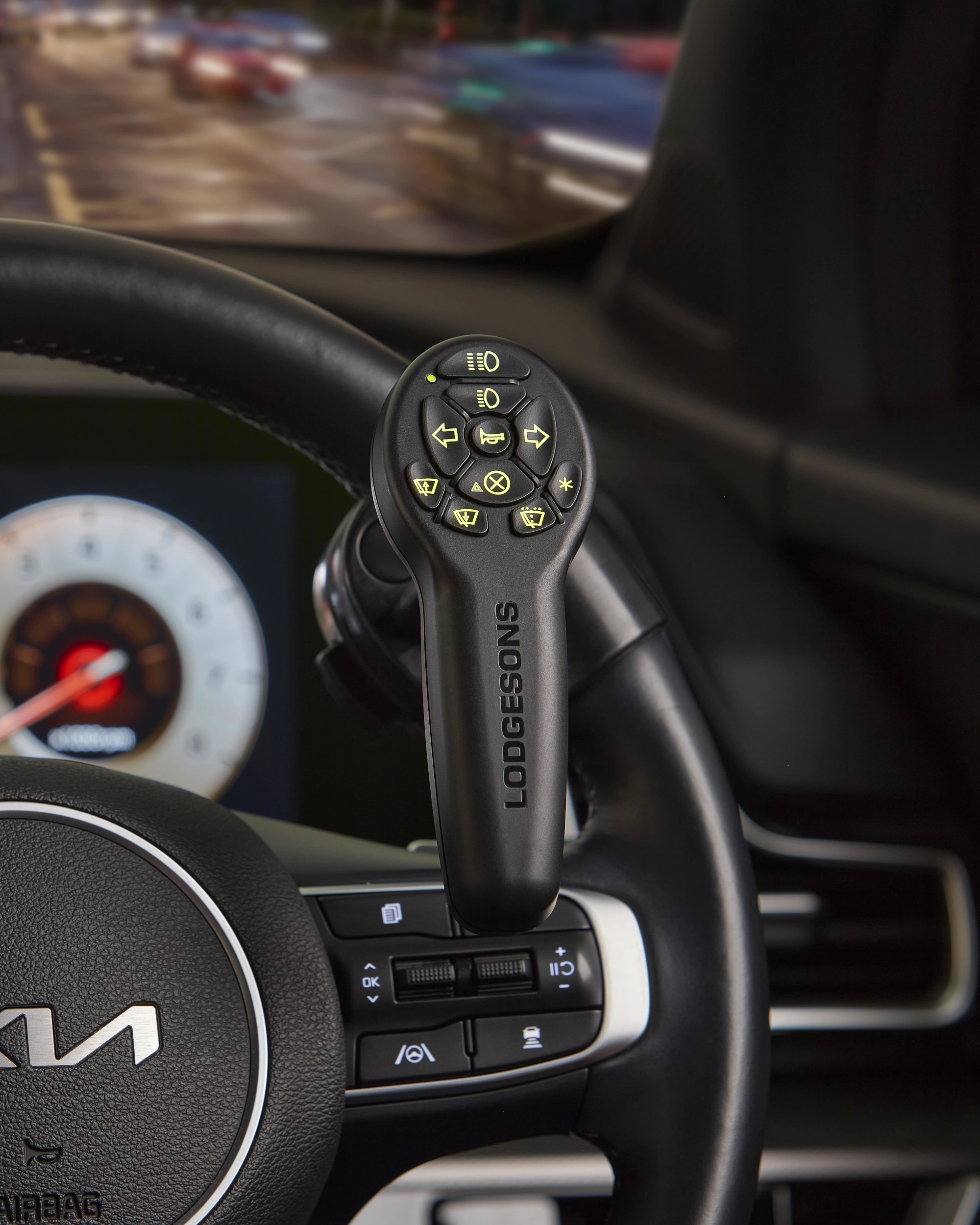 Lodgesons EuroGrip to najnowszy, wyjątkowo ergonomiczny uchwyt z bezprzewodowym pulpitem montowanym na kierownicy, zaprojektowany z myślą o maksymalnym komforcie i bezpieczeństwie prowadzenia samochodu przez osoby z ograniczoną sprawnością ruchową. Jest funkcjonalnie zgodny z dotychczasowymi modelami (np. R207), ale wyróżnia się nowym kształtem, miękkim wykończeniem i pewnym, naturalnym chwytem, który zmniejsza zmęczenie dłoni podczas dłuższej jazdy.